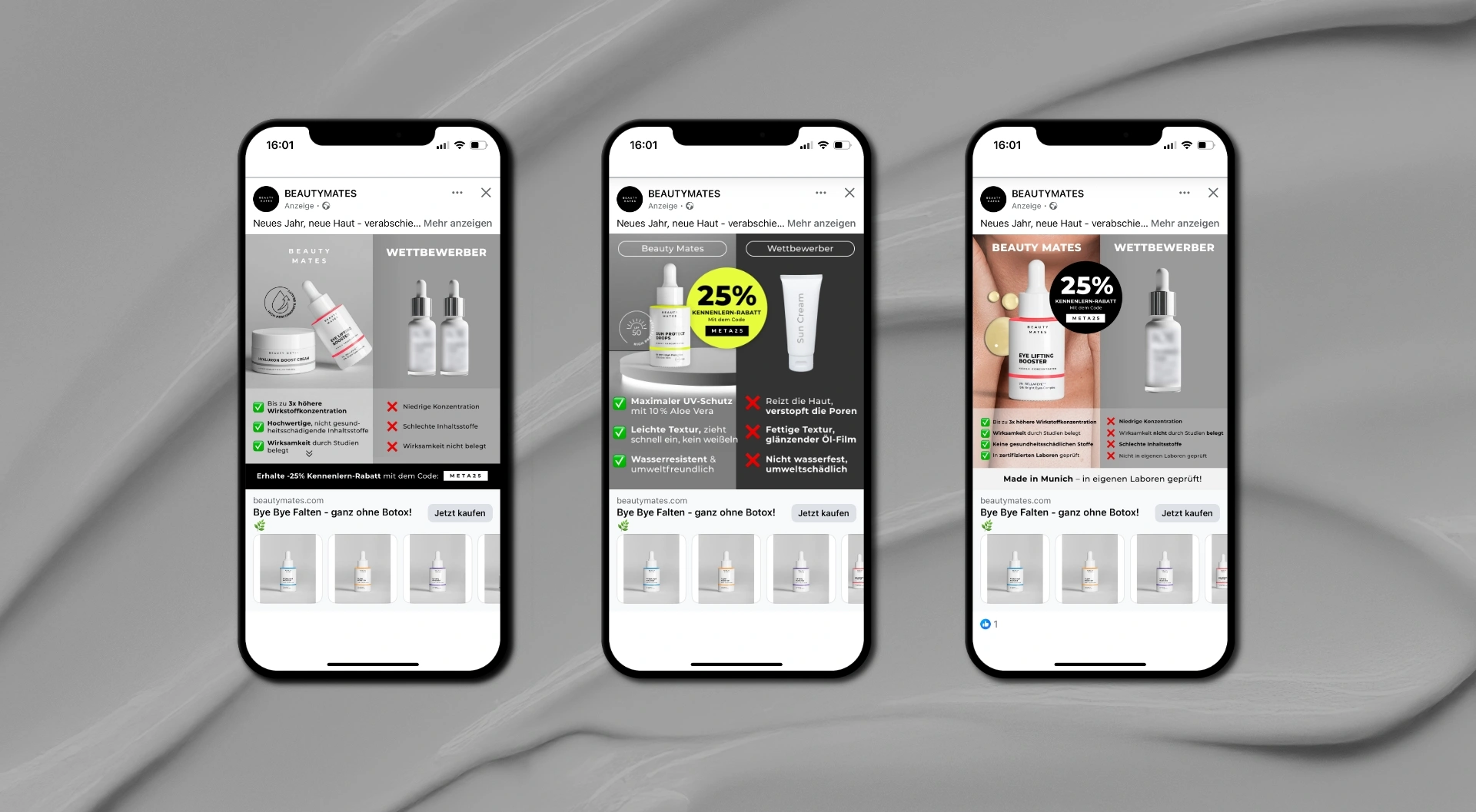Performance Creatives wurden als systematisches Setup gedacht – mit klaren Rollen im Funnel, wiederkehrenden Mustern und gezielter Variation für Testing und Skalierung. Inhalte wurden bewusst reduziert und visuell so strukturiert, dass Botschaften im ersten Kontakt schnell erfassbar sind.