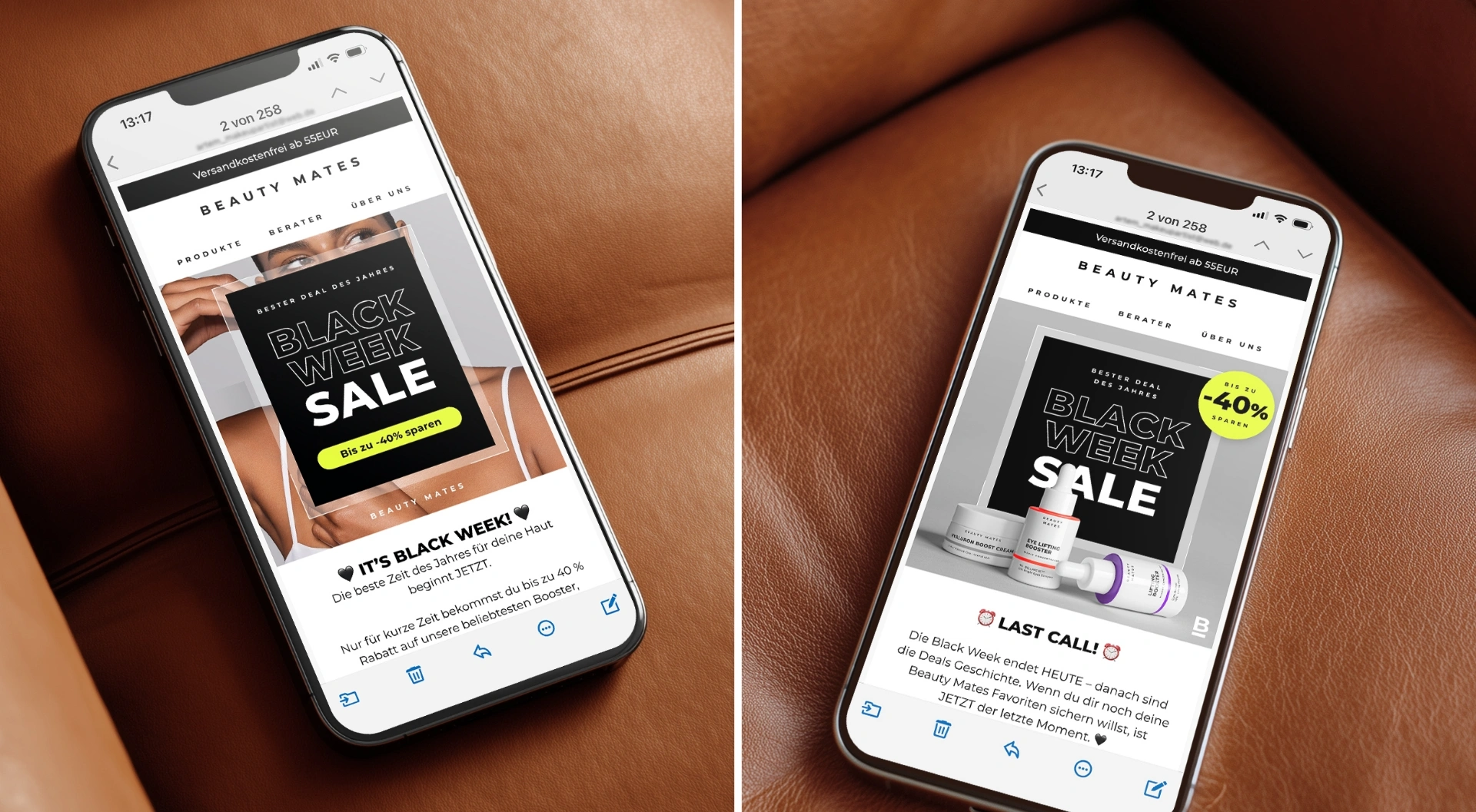 Ausspielung über alle relevanten Touchpoints im E-Commerce, darunter Website, E-Mail, Paid Social und Print, sowie Entwicklung einer Vielzahl kanaladaptierter Assets für unterschiedliche Formate und Einsatzbereiche.