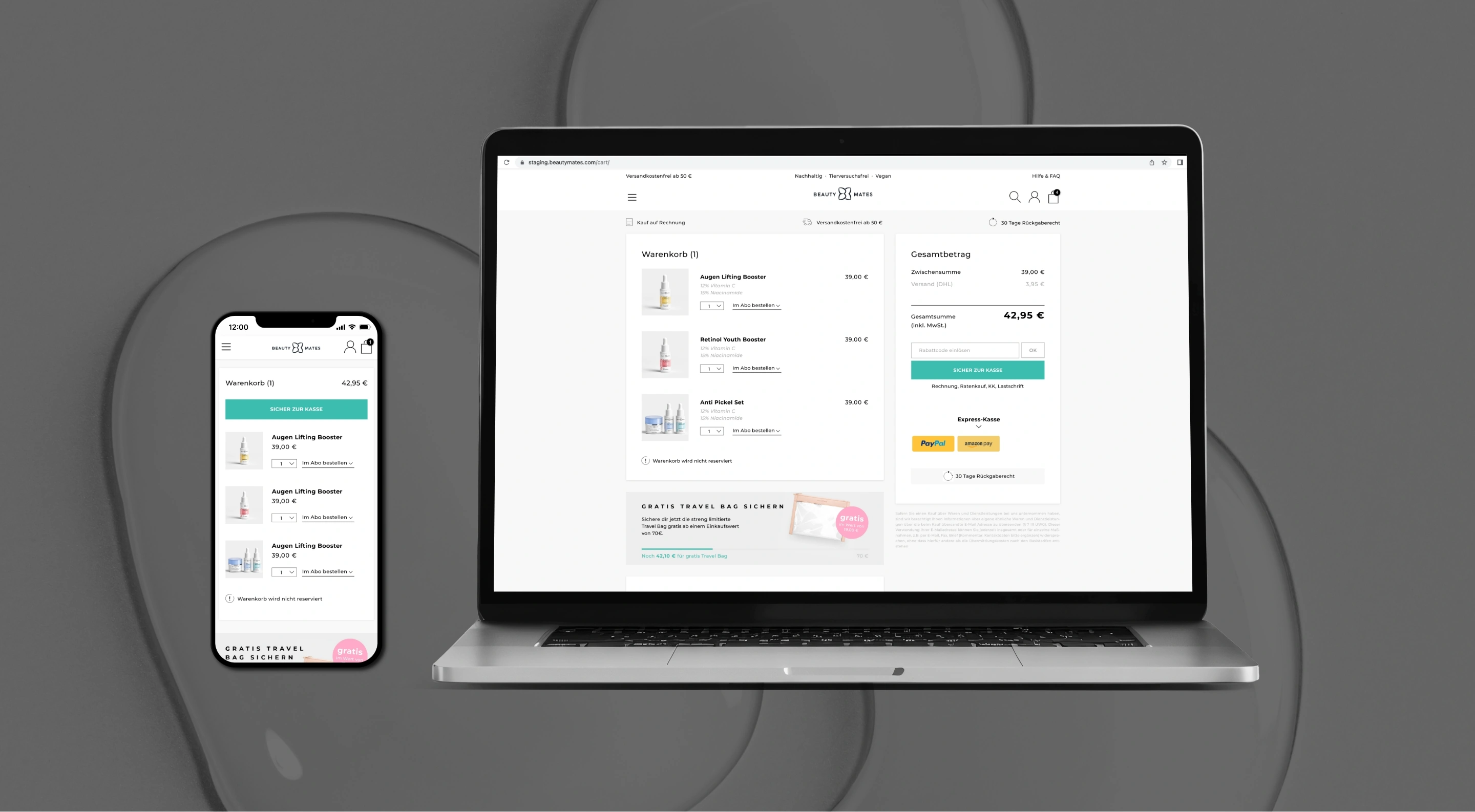 Überarbeitung des Warenkorbs zur Reduktion von Abbrüchen durch klare Struktur, visuelle Priorisierung und Integration relevanter Kaufargumente.