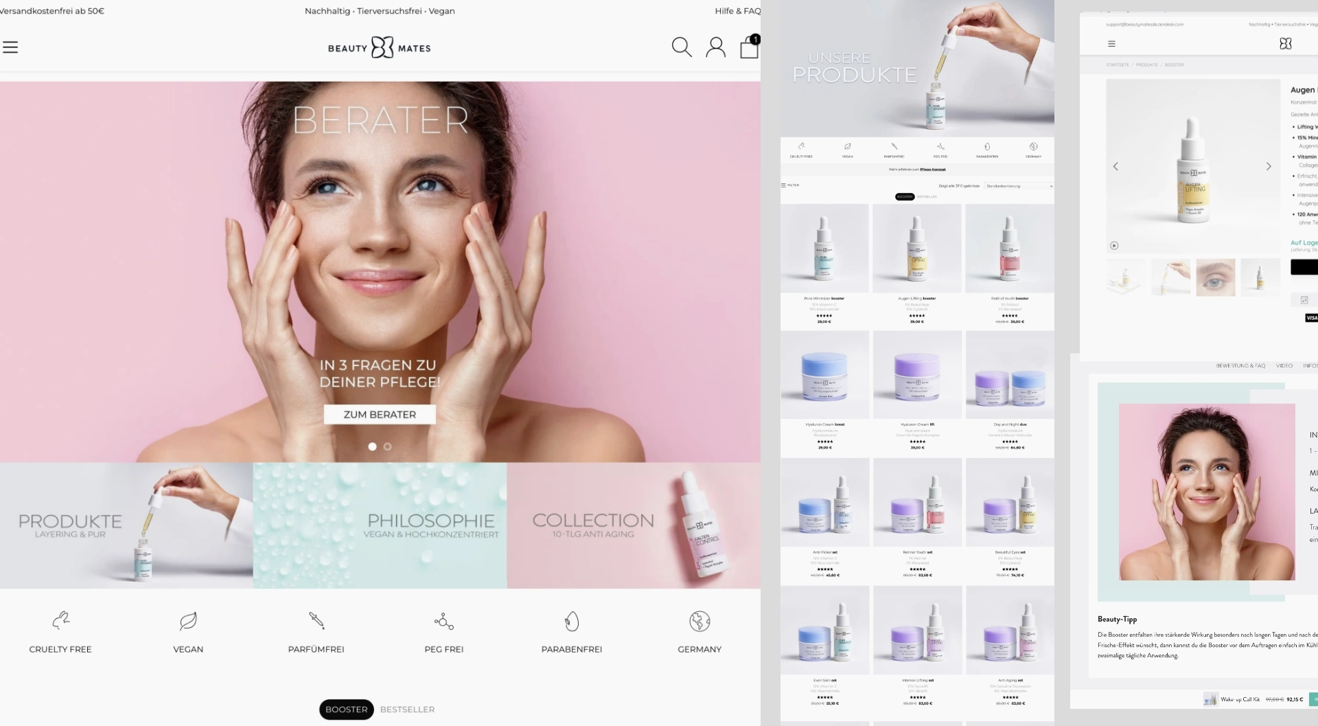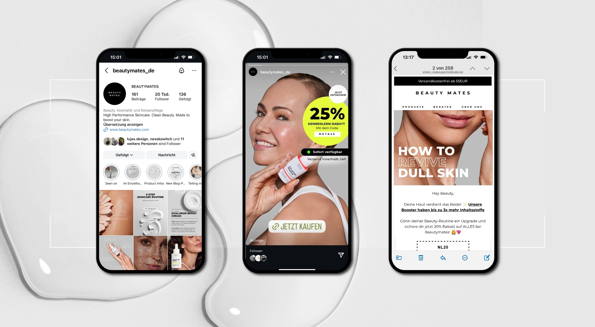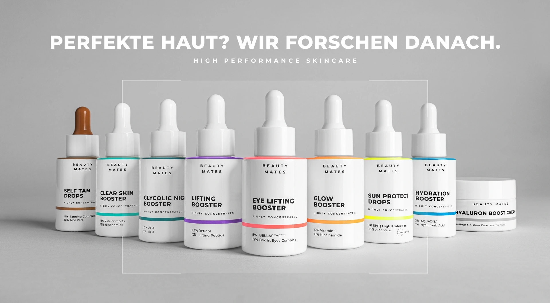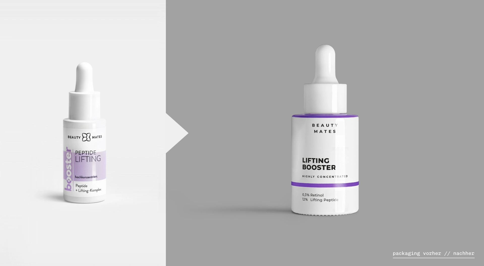 Entwicklung eines ganzheitlichen Rebrandings mit anschließendem 360° Brand- und Product-Relaunch für Beauty Mates mit dem Ziel, die visuelle Identität zu schärfen und die Marke klar im Bereich High Performance Skincare zu positionieren. Im Fokus stand der Aufbau einer konsistenten Markenwelt über alle relevanten Touchpoints hinweg – von Packaging und E-Commerce bis hin zu Kampagnen und POS.